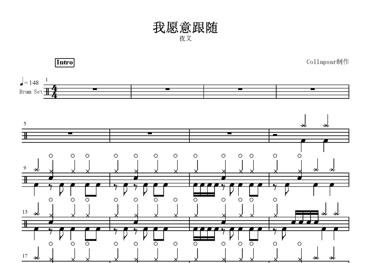 夜叉《我愿意跟随》鼓谱 - 架子鼓谱