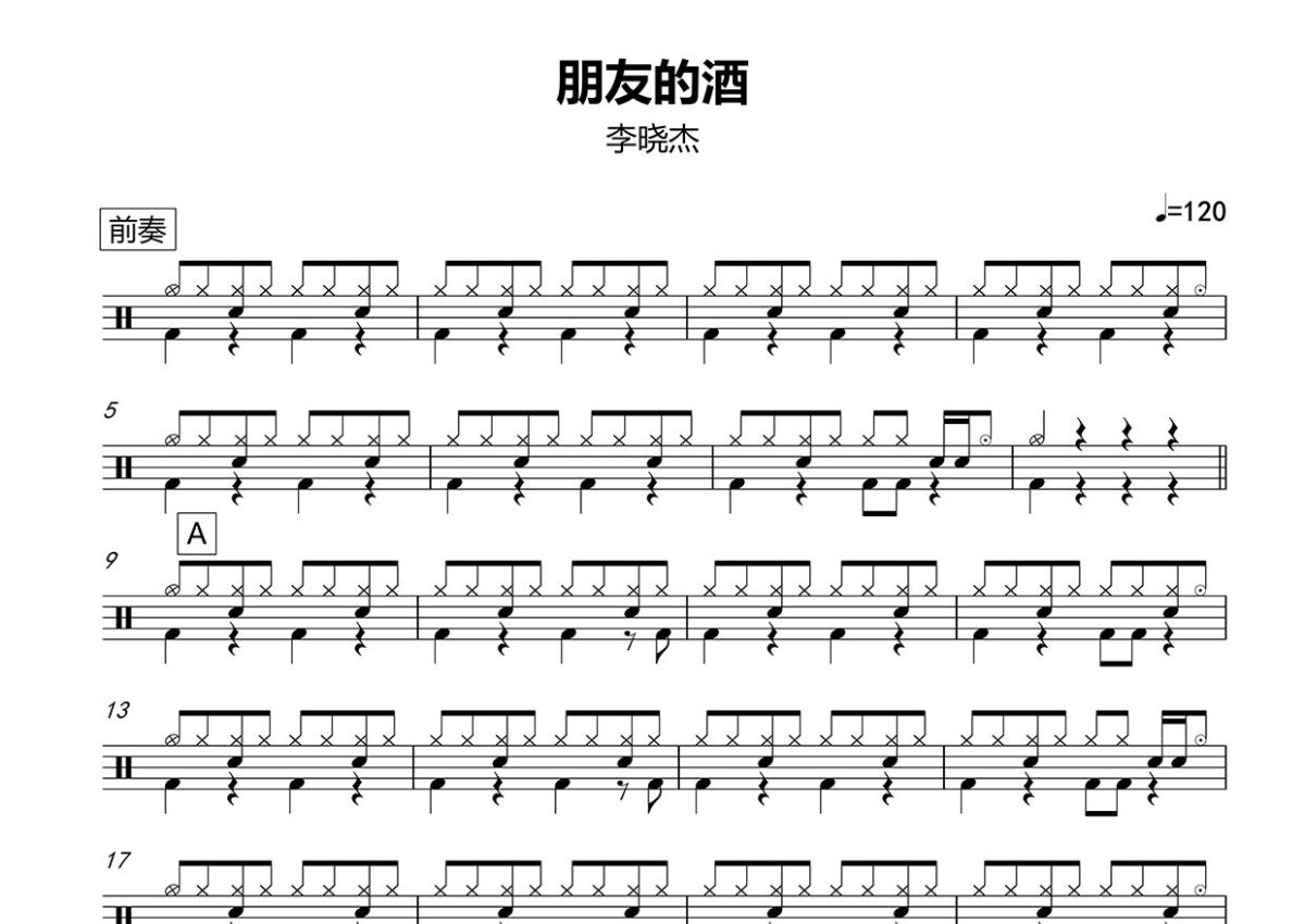 李晓杰《朋友的酒》鼓谱 - 架子鼓谱