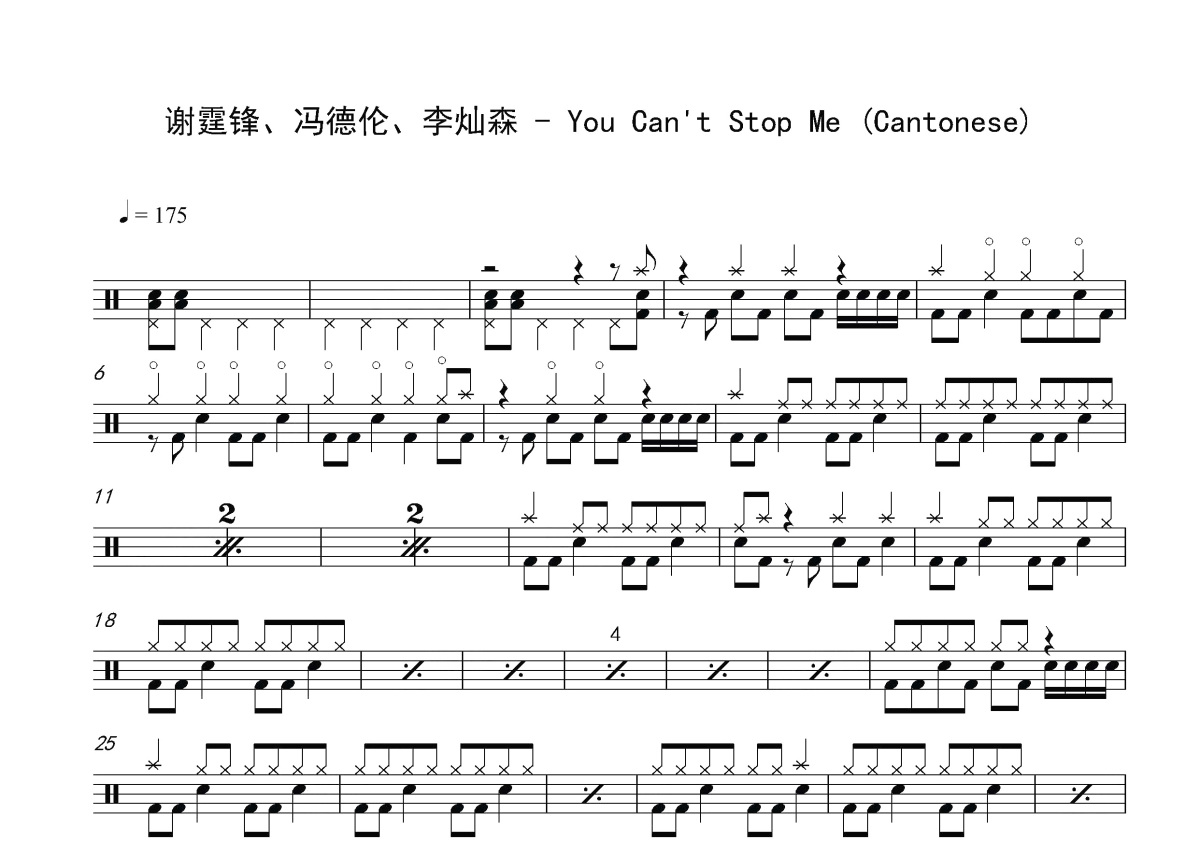 谢霆锋/冯德伦/李灿森《You Cant Stop Me》鼓谱 - 架子鼓谱