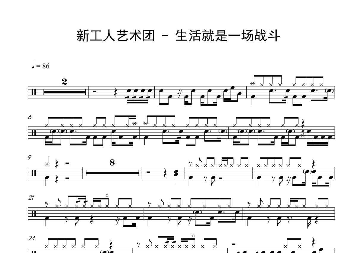 新工人艺术团《生活就是一场战斗》鼓谱 - 架子鼓谱