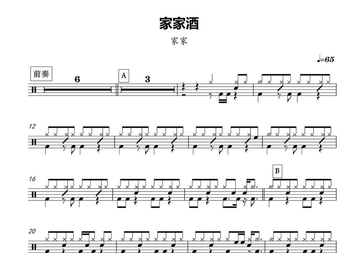 家家《家家酒》鼓谱 - 架子鼓谱
