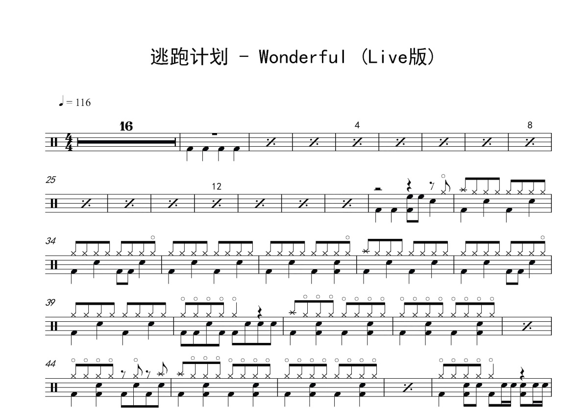 逃跑计划《wonderful》鼓谱 - 架子鼓谱