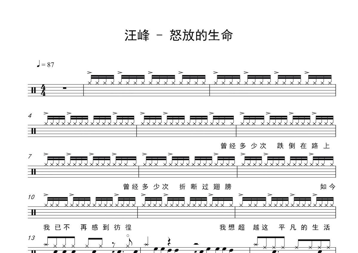 汪峰《怒放的生命》鼓谱 - 架子鼓谱