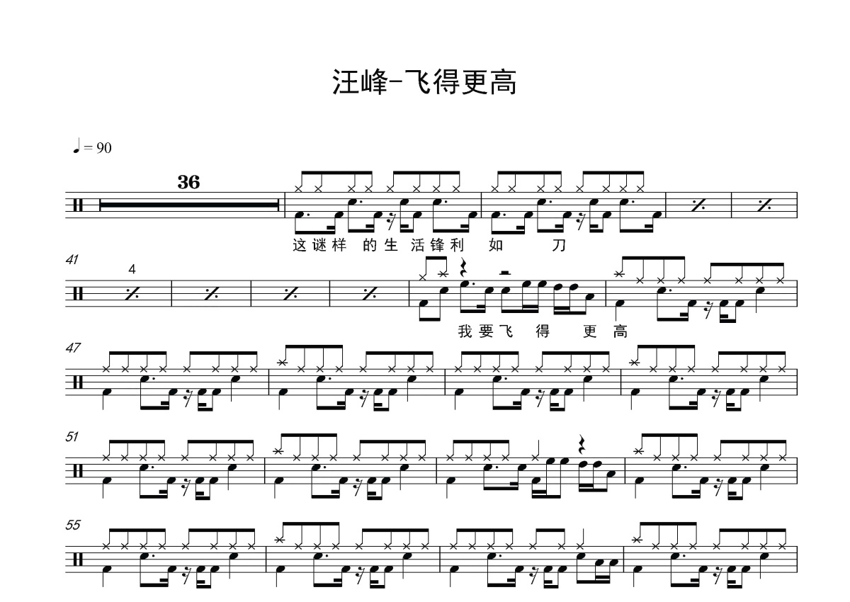 汪峰《飞得更高》鼓谱 - 架子鼓谱