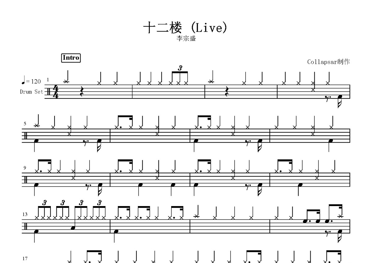 李宗盛《十二楼》鼓谱 - 架子鼓谱