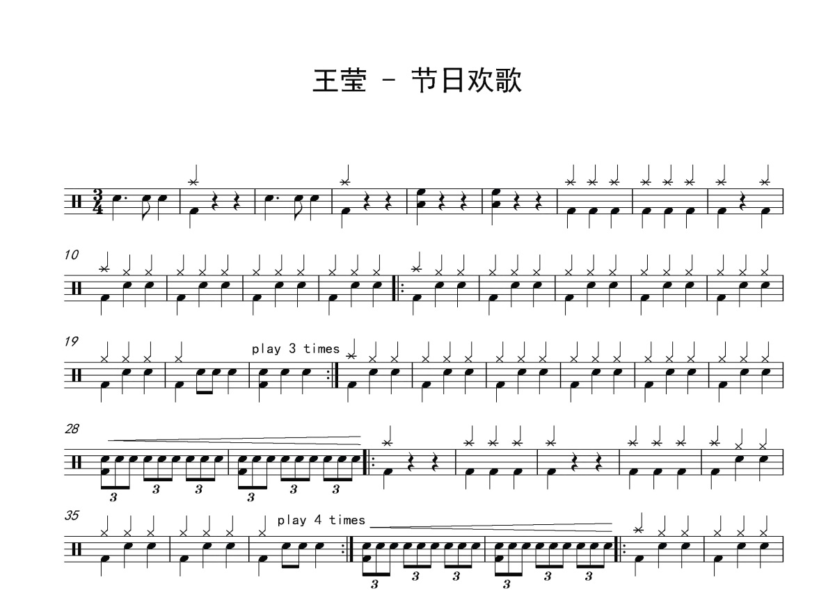 王莹《节日欢歌》鼓谱 - 架子鼓谱