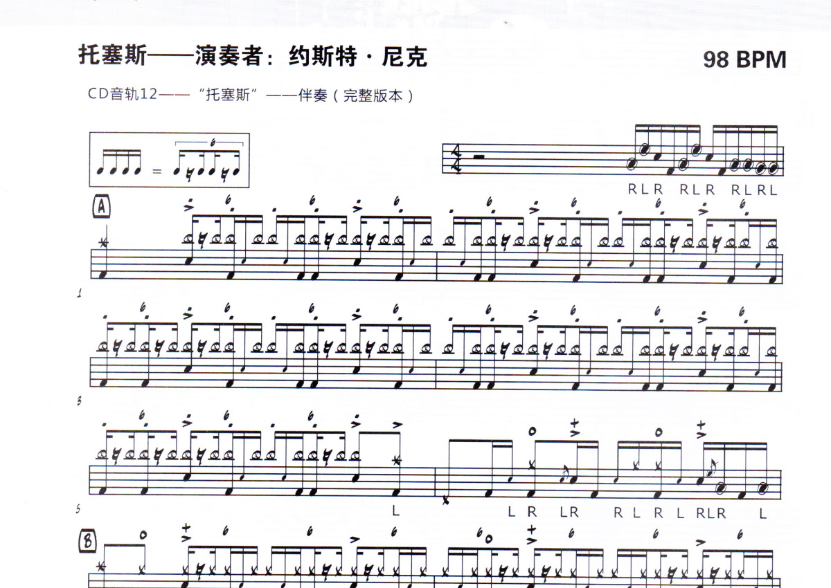 黄祖盛《托塞斯》鼓谱 - 架子鼓谱