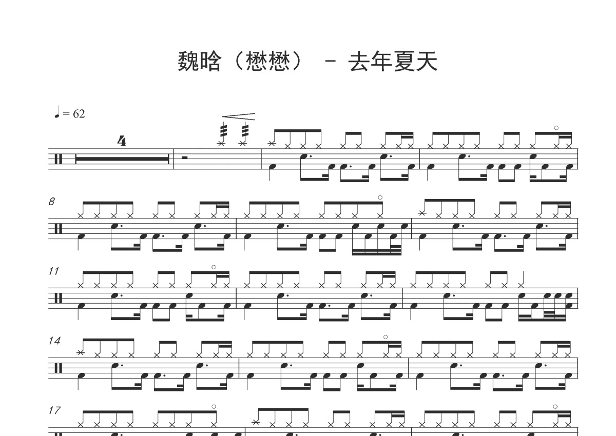 魏晗/懋懋《去年夏天》鼓谱 - 架子鼓谱