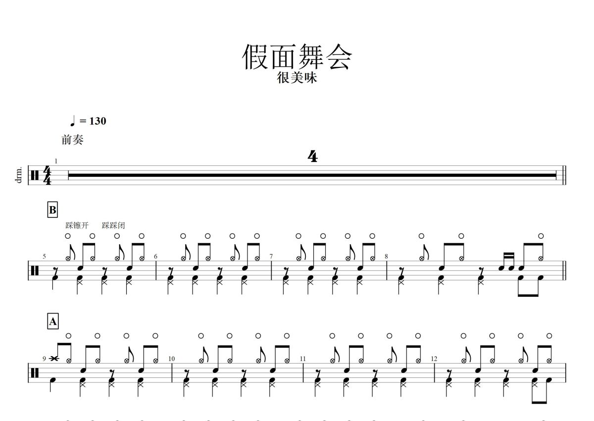 很美味《假面舞会》鼓谱 - 架子鼓谱