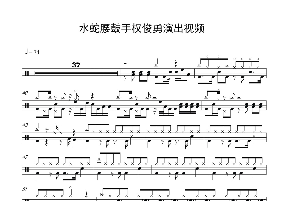 权俊勇《水蛇腰鼓手权俊勇最新演出》鼓谱 - 架子鼓谱