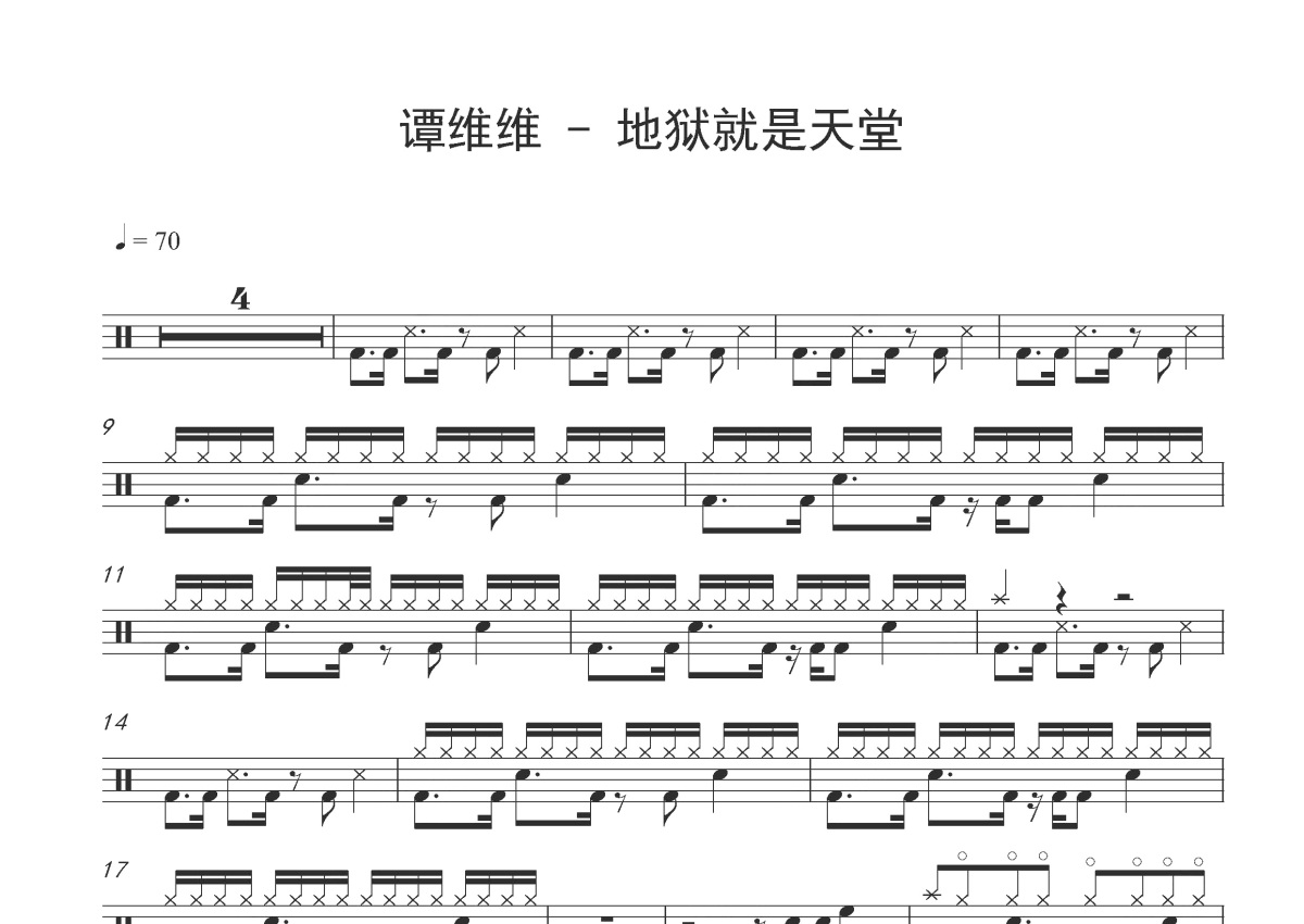谭维维《地狱就是天堂》鼓谱 - 架子鼓谱