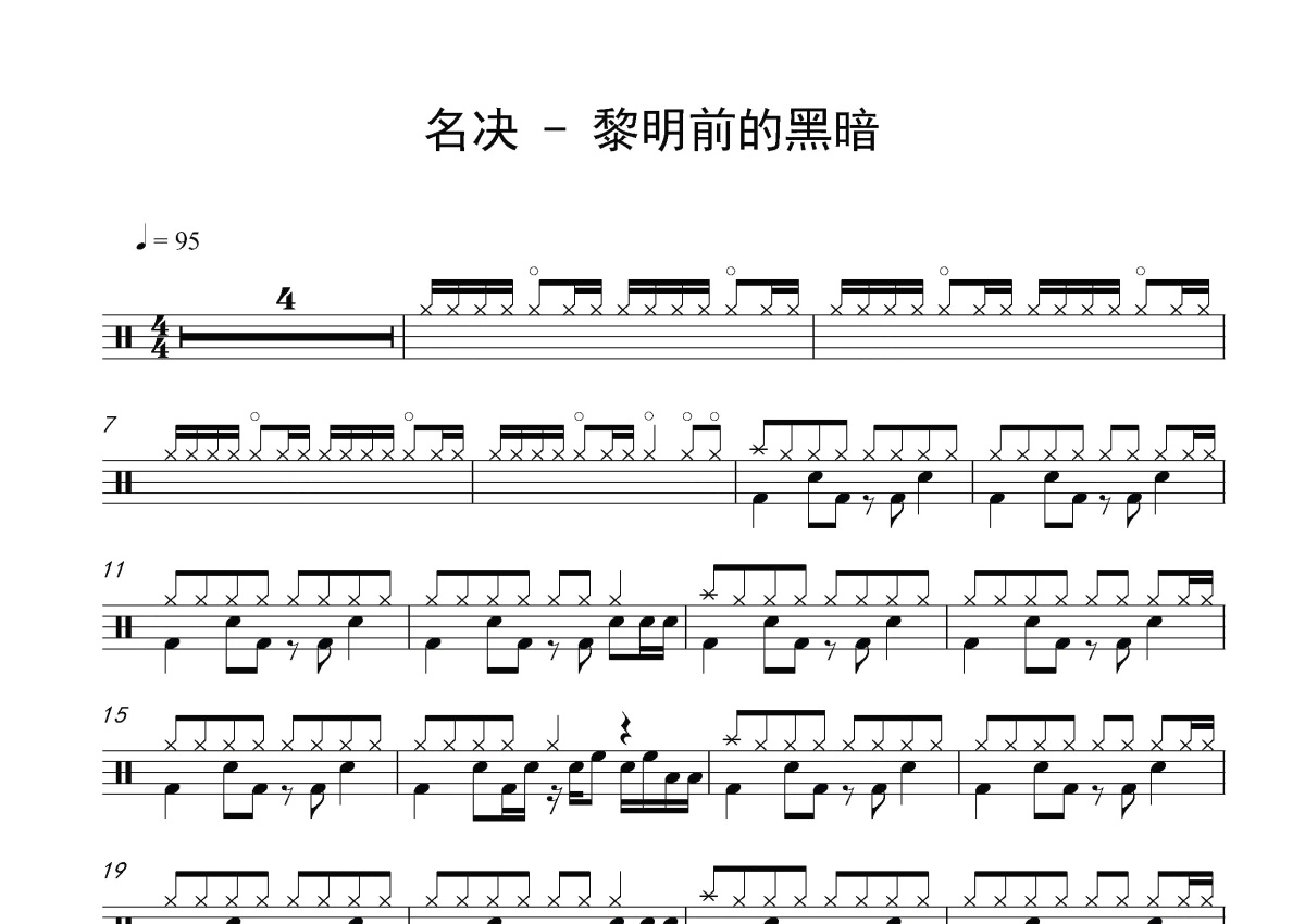 名决《黎明前的黑暗》鼓谱 - 架子鼓谱