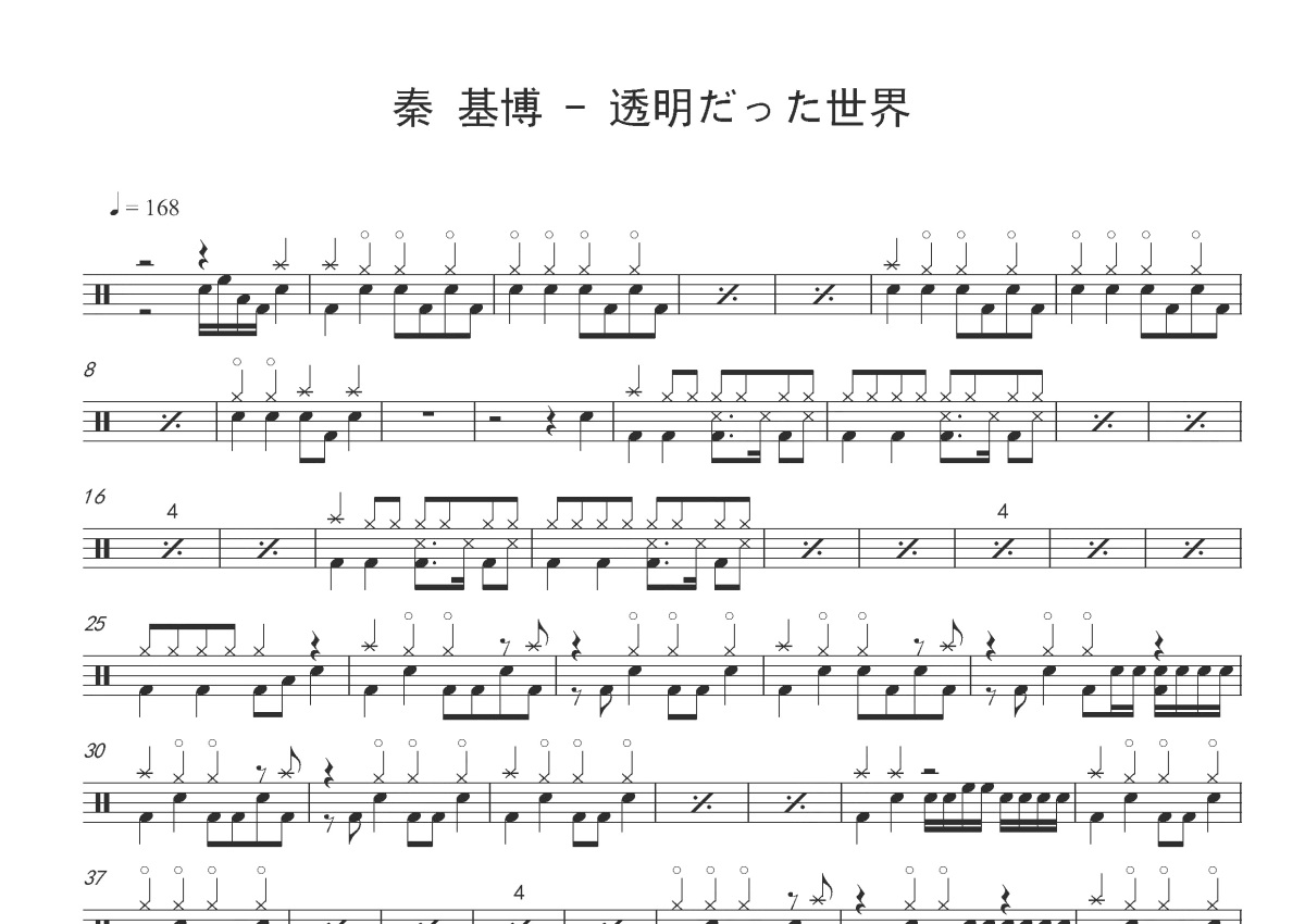秦 基博《透明だった世界》鼓谱 - 架子鼓谱
