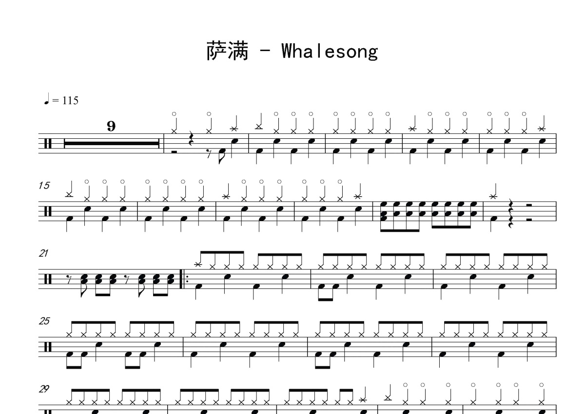 萨满《鲸歌》鼓谱 - 架子鼓谱