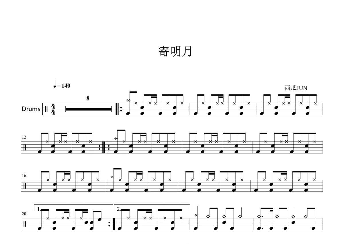 西瓜jun《寄明月》鼓谱 - 架子鼓谱