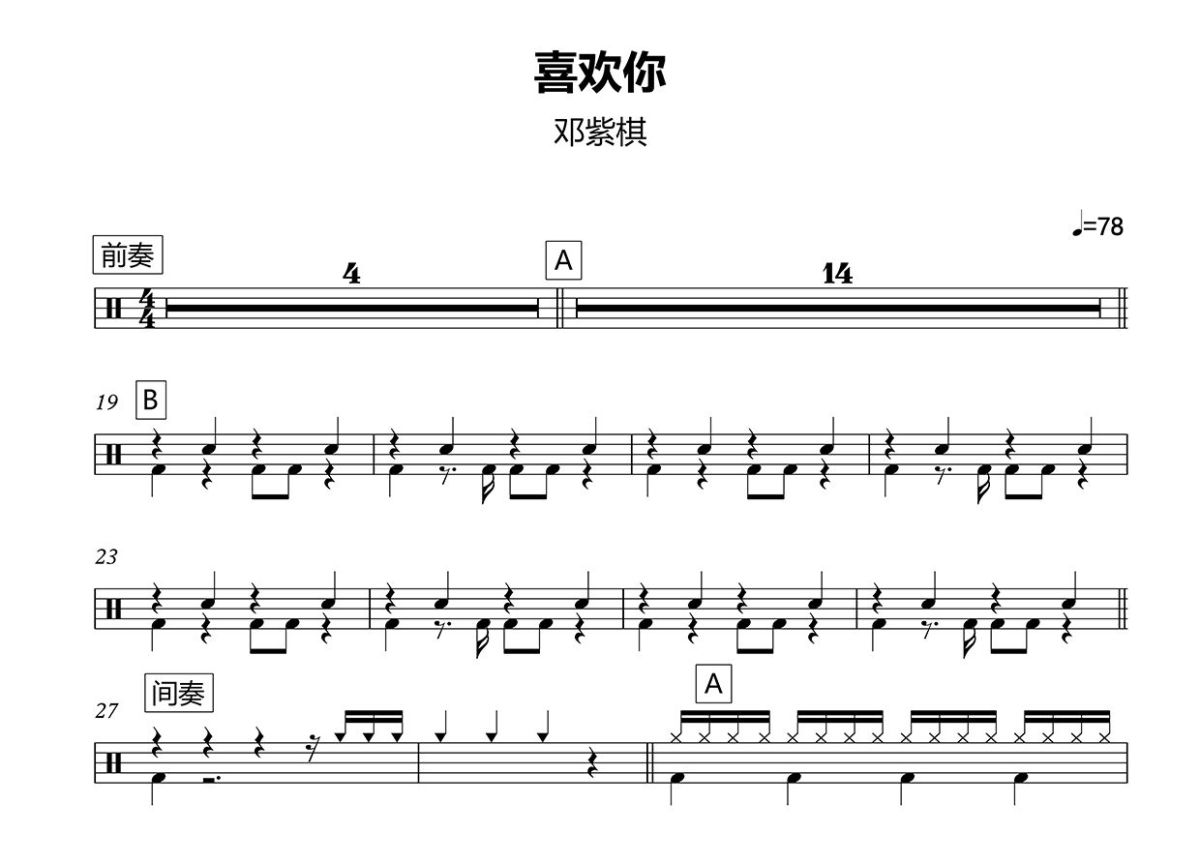 邓紫棋《喜欢你》鼓谱 - 架子鼓谱