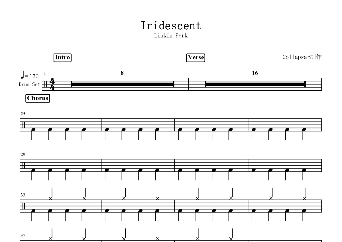 Linkin park《Iridescent》鼓谱 - 架子鼓谱