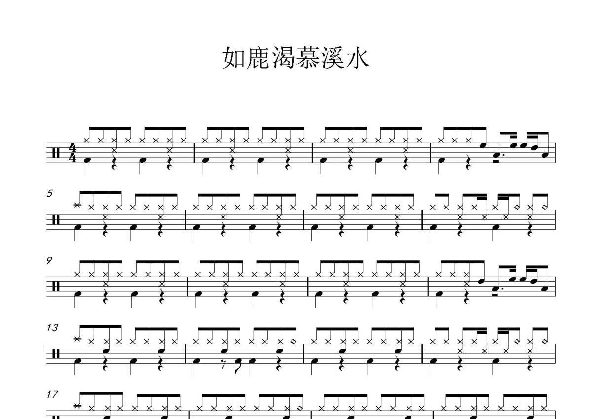 华语群星《如鹿渴慕溪水》鼓谱 - 架子鼓谱