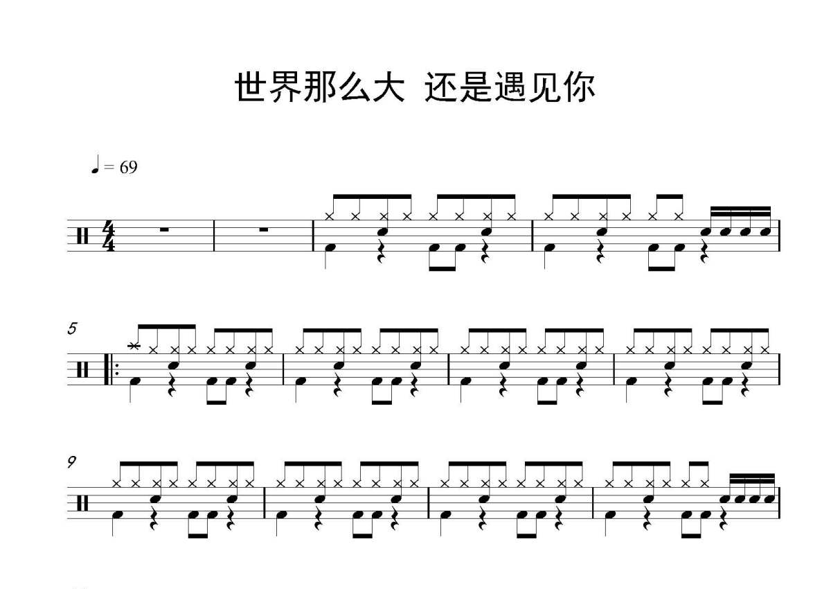 刘亦泽《世界那么大 还是遇见你》鼓谱 - 架子鼓谱