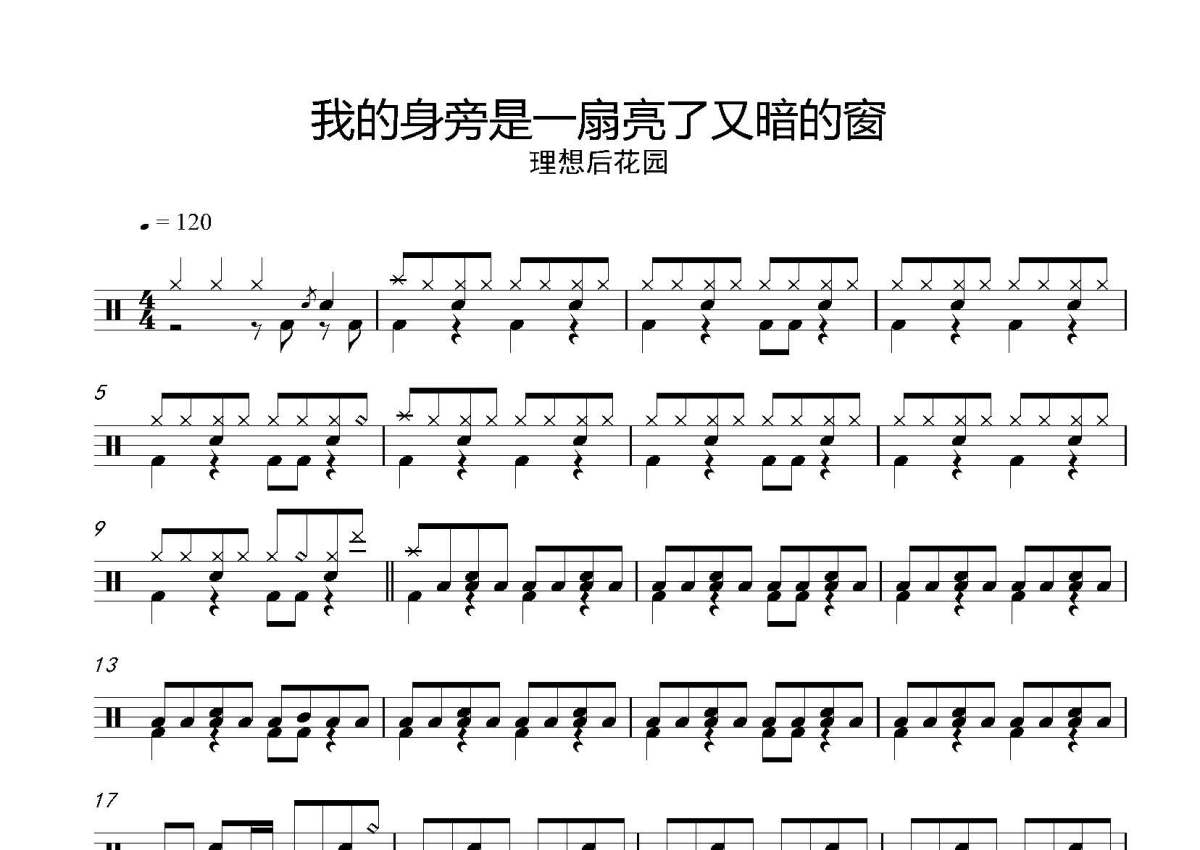 理想后花园《我的身旁是一扇亮了又暗的窗》鼓谱 - 架子鼓谱