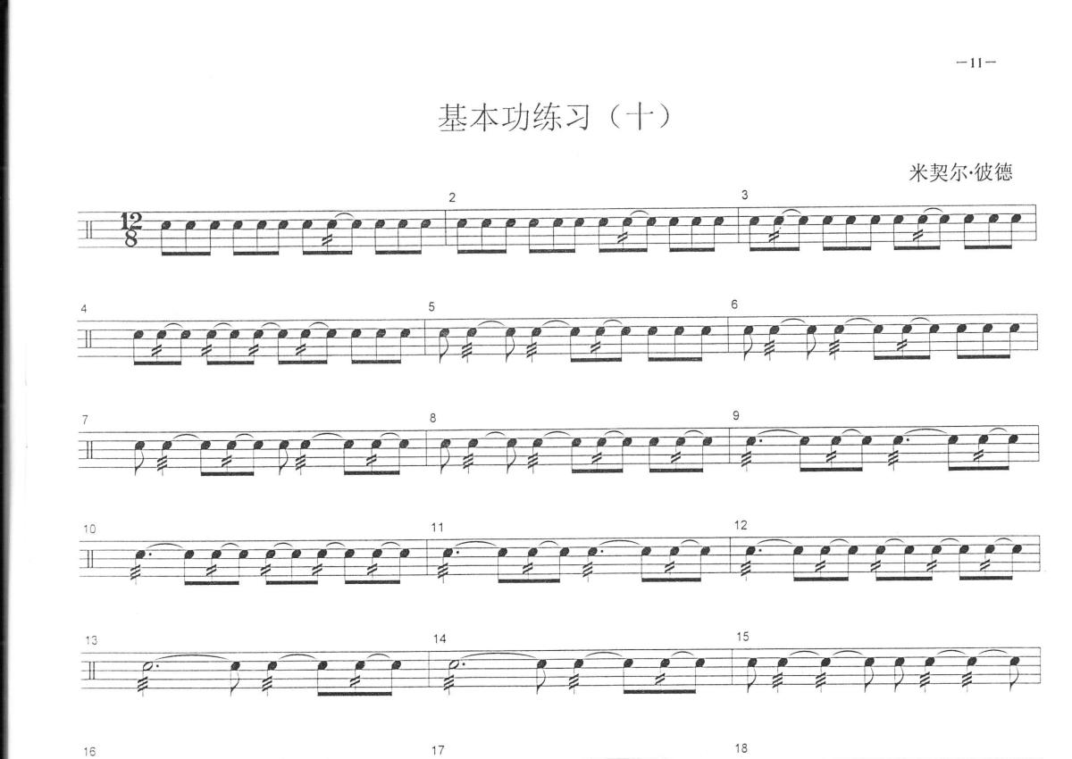 中央音乐学院小鼓考级教程《基本功练习十》鼓谱 - 架子鼓谱