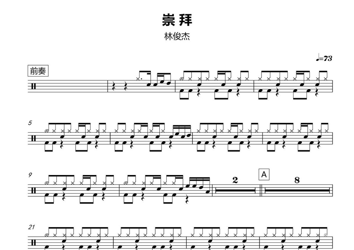 林俊杰《崇拜》鼓谱 - 架子鼓谱