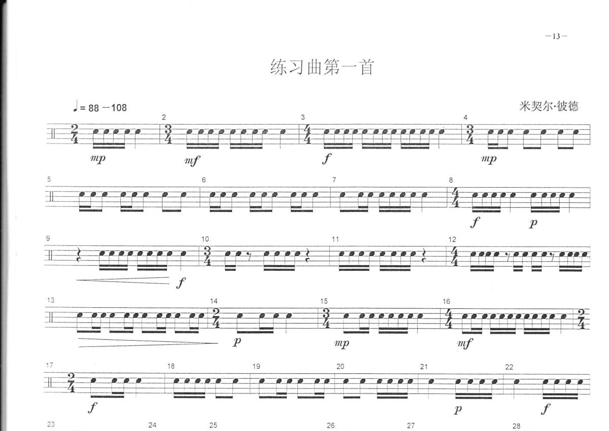 中央音乐学院小鼓考级教程《练习曲第一首》鼓谱 - 架子鼓谱