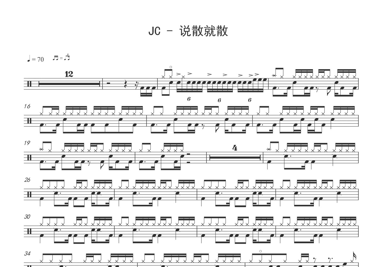《说散就散》是陈泳彤演唱的一首歌曲,这份鼓谱共有一张高清图谱,图谱由 @打鼓谱 编配上传,图谱使用五线谱编配,使用这份说散就散架子鼓谱,你将能够轻松地敲打出这首陈泳彤的说散就散,快来尝试吧。《说散就散》 是陈泳彤原唱的歌曲,亦是电视剧《入侵者》的片头曲,由张楚翘作词,伍乐城作曲,发行于2016年6月14日。2017年12月,该曲成为电影《前任3:再见前任》的主题曲,先后发行了由袁娅维翻唱的版本,以及艾福杰尼、黄旭和田羽生演唱的改编版本。2018年,袁娅维演绎的版本获得华人歌曲音乐盛典年度金曲奖。陈泳彤(Jennifer Chan),原名陈咏桐,1998年6月23日出生于中国香港,中国香港流行乐女歌手,就读于香港理工大学市场学系。