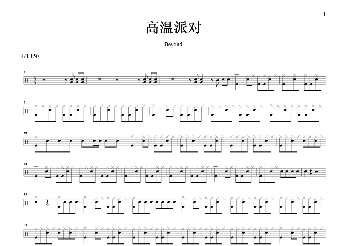 《高温派对》是Beyond演唱的一首歌曲,这份鼓谱共有两张高清图谱,图谱由 @打鼓谱 编配上传,图谱使用五线谱编配,使用这份高温派对架子鼓谱,你将能够轻松地敲打出这首Beyond的高温派对,快来尝试吧。《高温派对》是乐队Beyond的一首布鲁斯金属音乐作品,收录在Beyond于1991年发行的粤语专辑《犹豫》内。该作品的词作者为陈敏生,曲作者为黄家驹,歌曲由黄家驹、黄贯中、黄家强合唱。 Beyond,中国香港摇滚乐队,成立于1983年,由黄家驹、黄贯中、黄家强、叶世荣组成。1983年参加“山叶吉他比赛”获得冠军并正式出道。