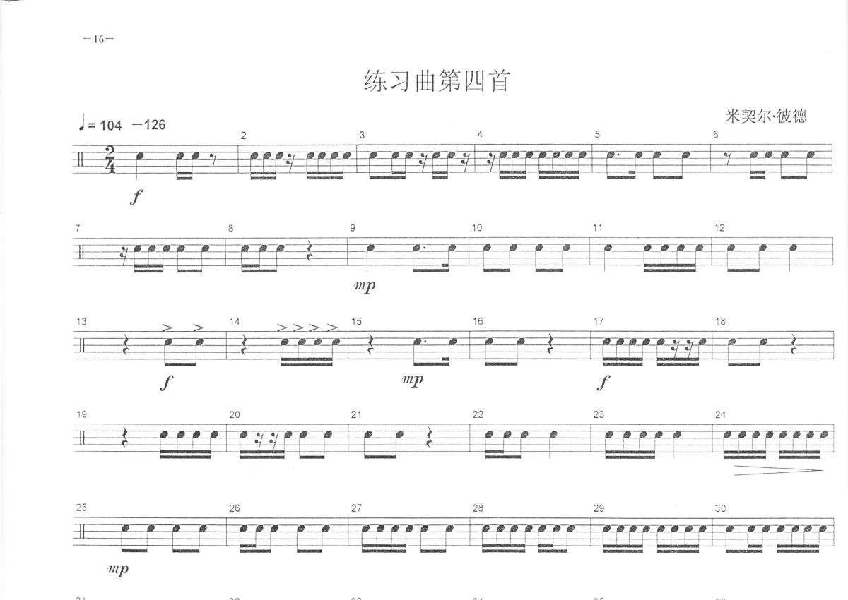 中央音乐学院小鼓考级教程《练习曲第四首》鼓谱 - 架子鼓谱