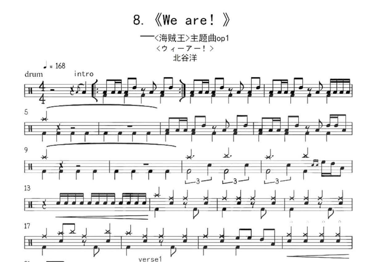 海贼王主题曲《We Are》鼓谱 - 架子鼓谱