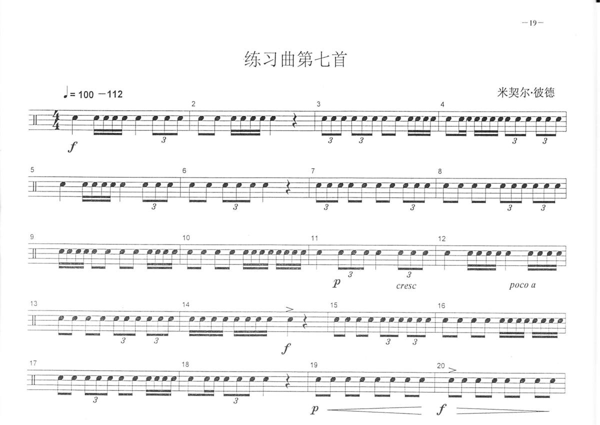 《练习曲第七首》是中央音乐学院小鼓考级教程演唱的一首歌曲,这份鼓谱共有一张高清图谱,图谱由 @打鼓谱 编配上传,图谱使用五线谱编配,使用这份练习曲第七首架子鼓谱,你将能够轻松地敲打出这首中央音乐学院小鼓考级教程的练习曲第七首,快来尝试吧。此考级教材皆被中央音乐学院、中国音乐学院认可。