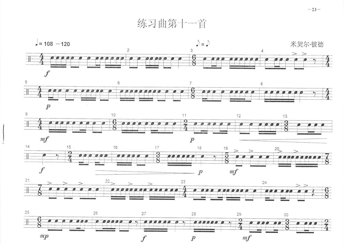 中央音乐学院小鼓考级教程《练习曲第十一首》鼓谱 - 架子鼓谱