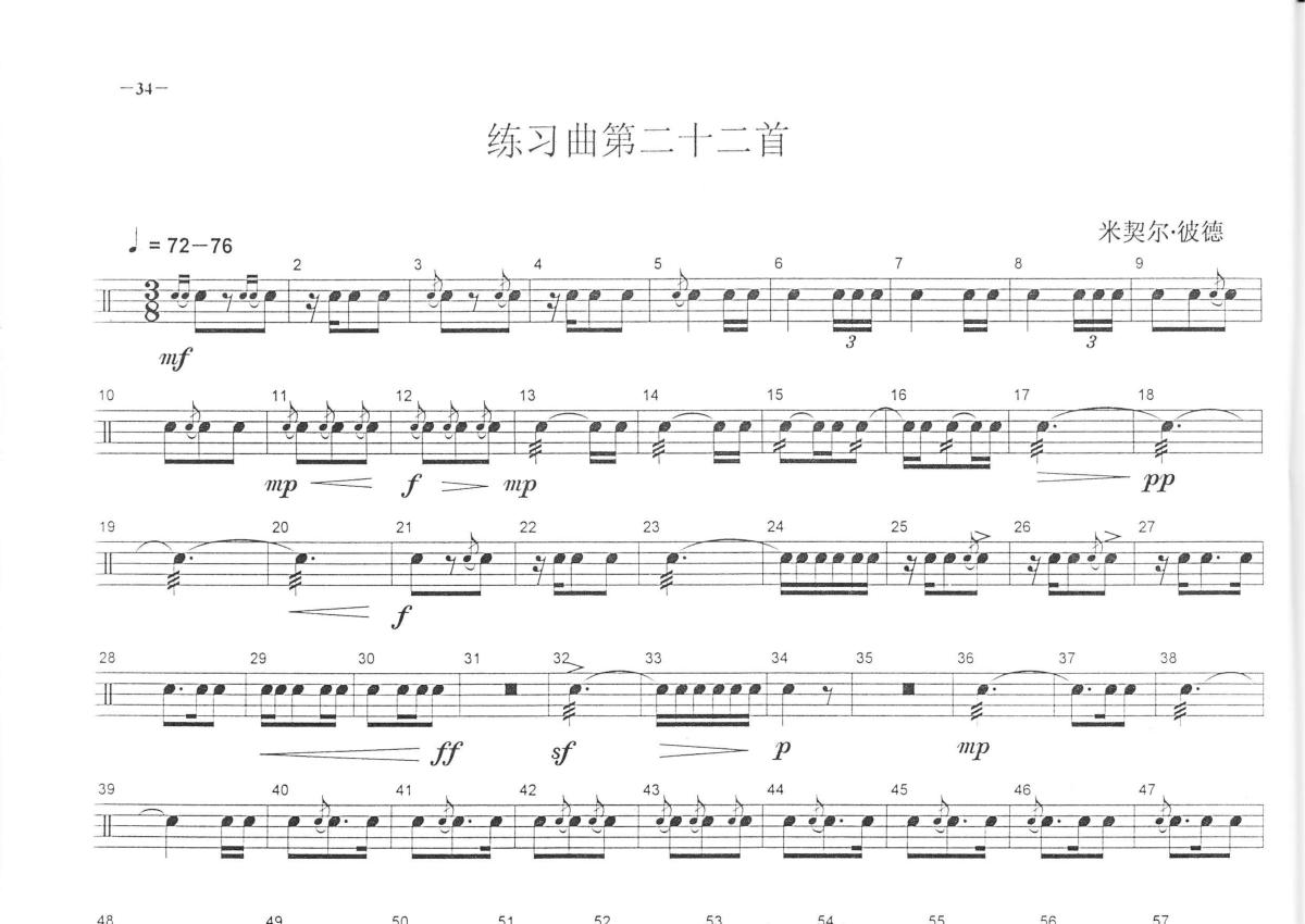中央音乐学院小鼓考级教程《练习曲第二十二首》鼓谱 - 架子鼓谱