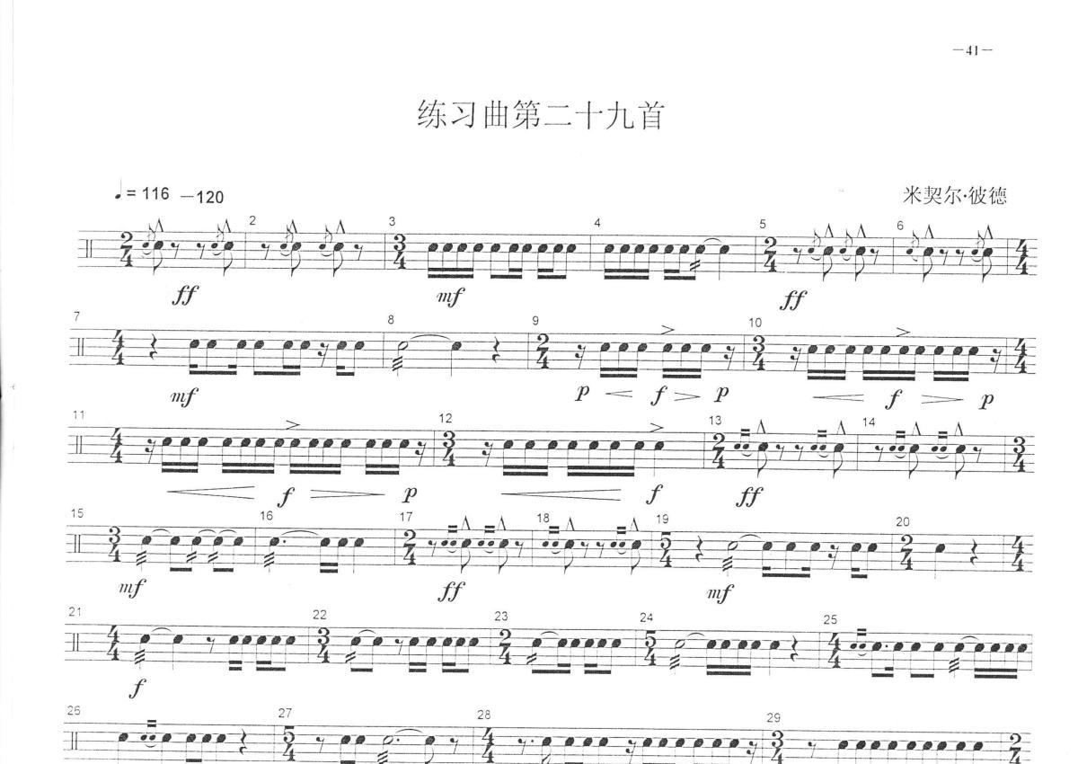 中央音乐学院小鼓考级教程《练习曲二十九》鼓谱 - 架子鼓谱