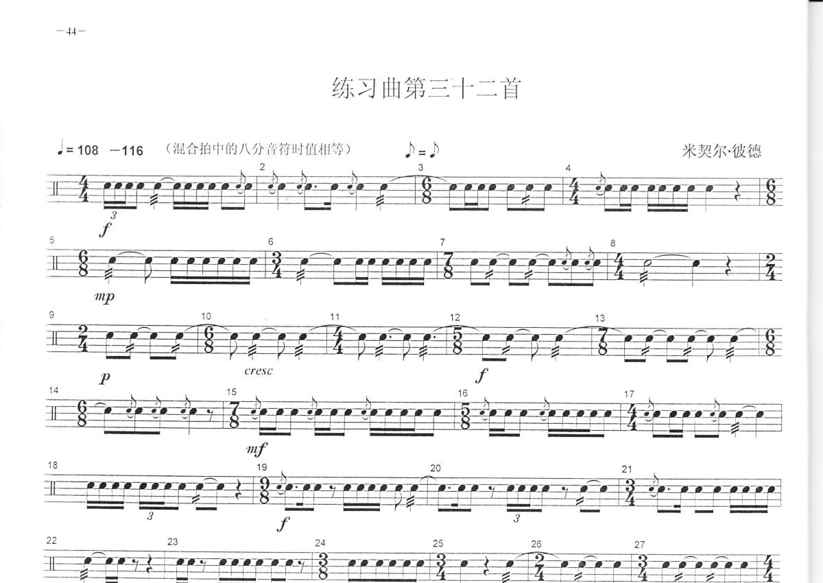 中央音乐学院小鼓考级教程《练习曲第三十二首》鼓谱 - 架子鼓谱