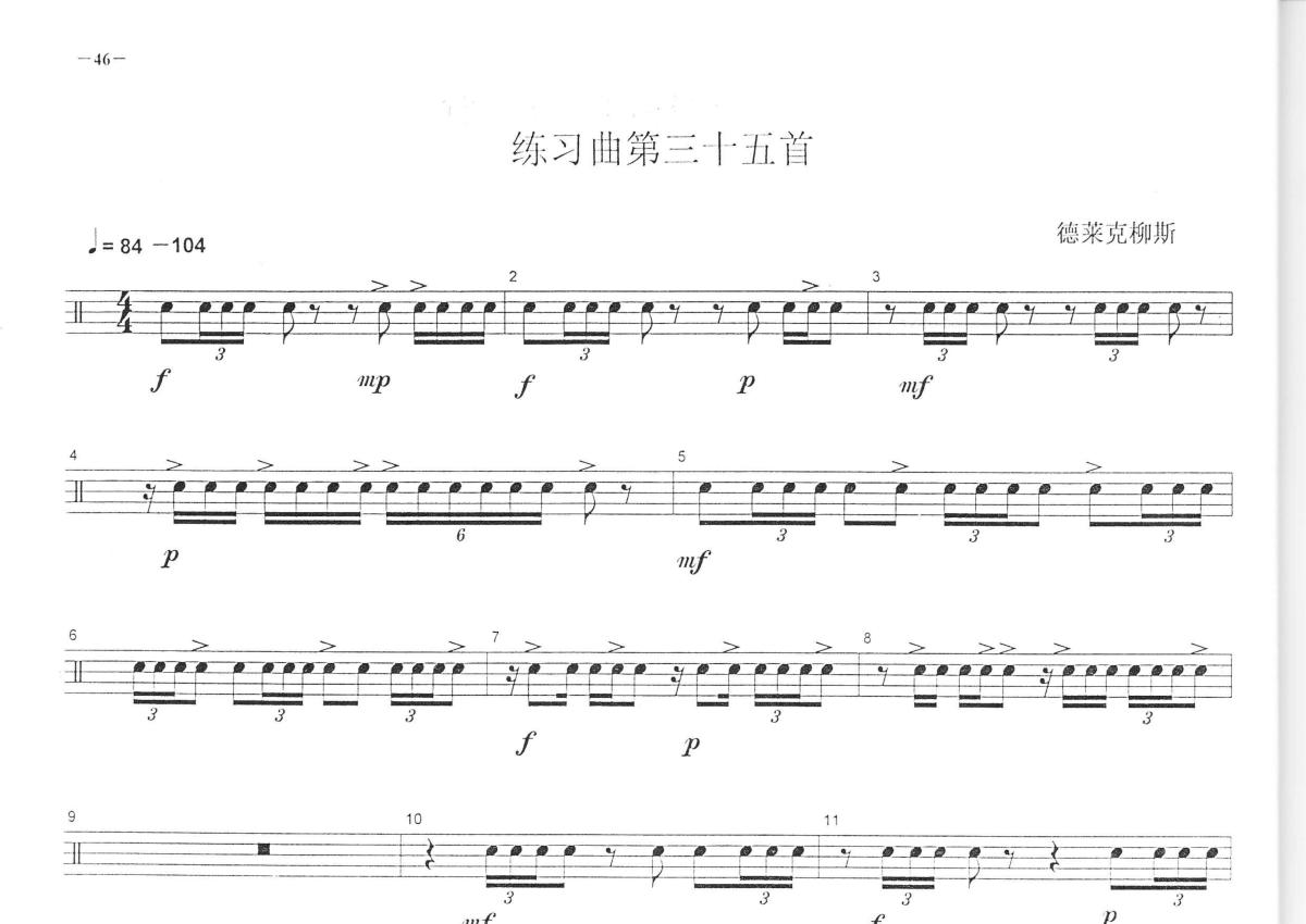 中央音乐学院小鼓考级教程《练习曲第三十五首》鼓谱 - 架子鼓谱