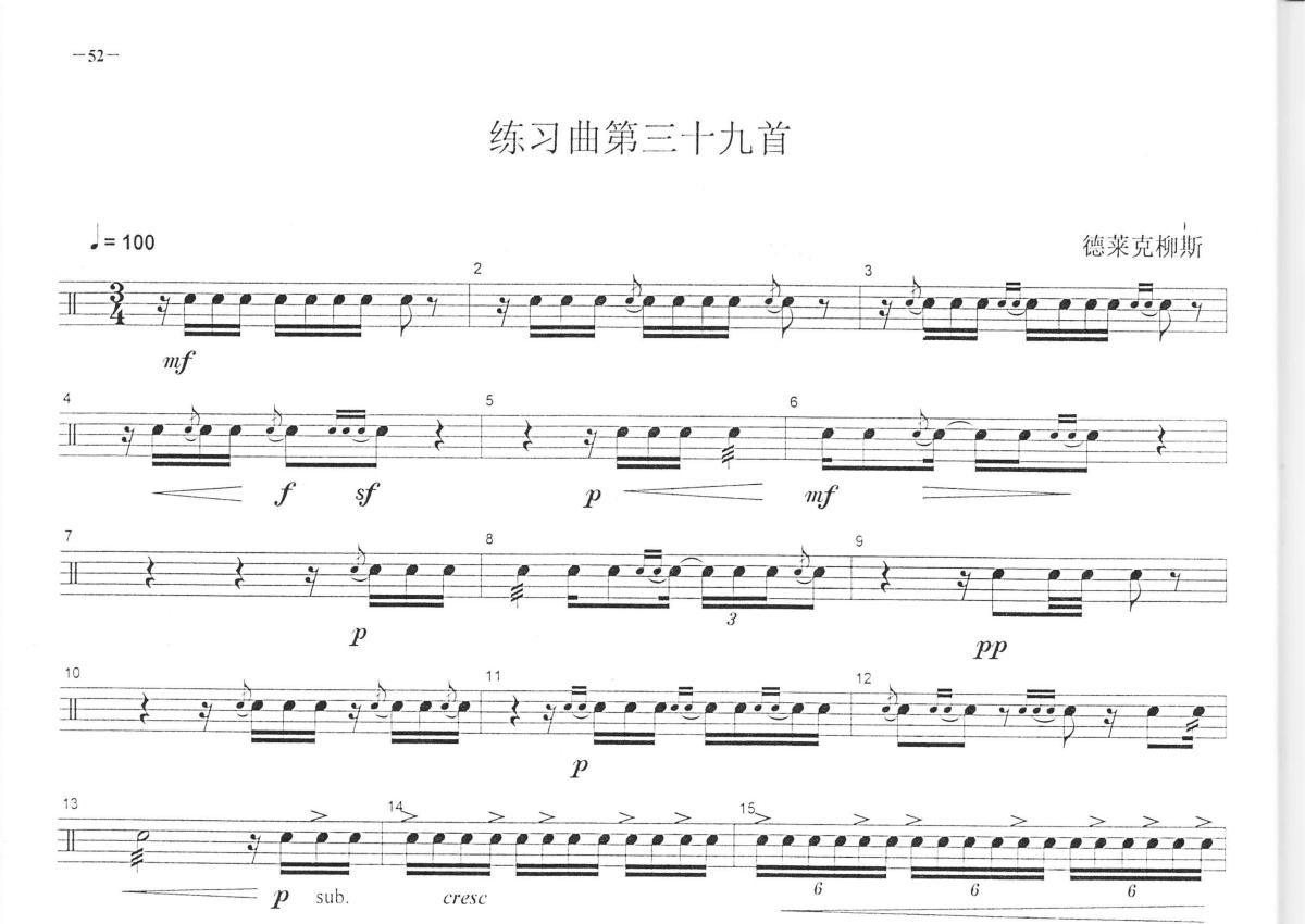 中央音乐学院小鼓考级教程《练习曲第三十九首》鼓谱 - 架子鼓谱