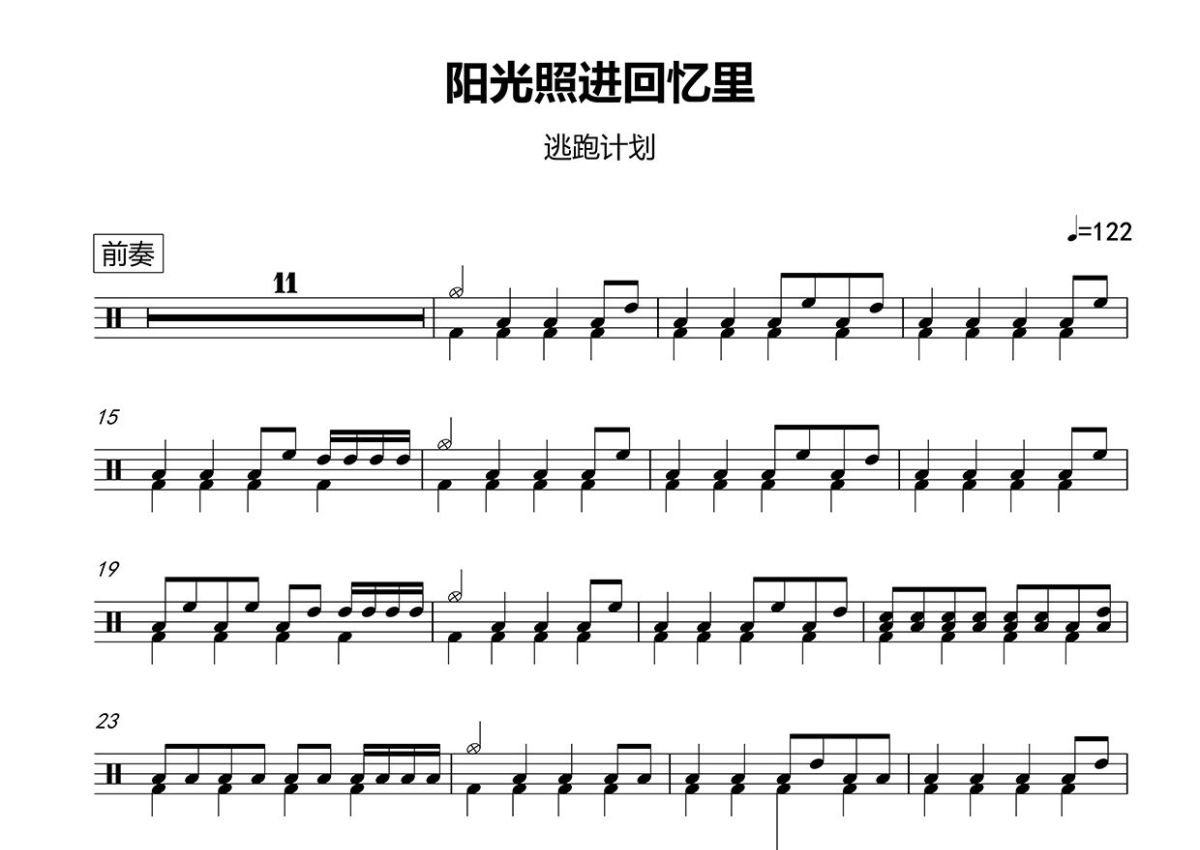 逃跑计划《阳光照进回忆里》鼓谱 - 架子鼓谱