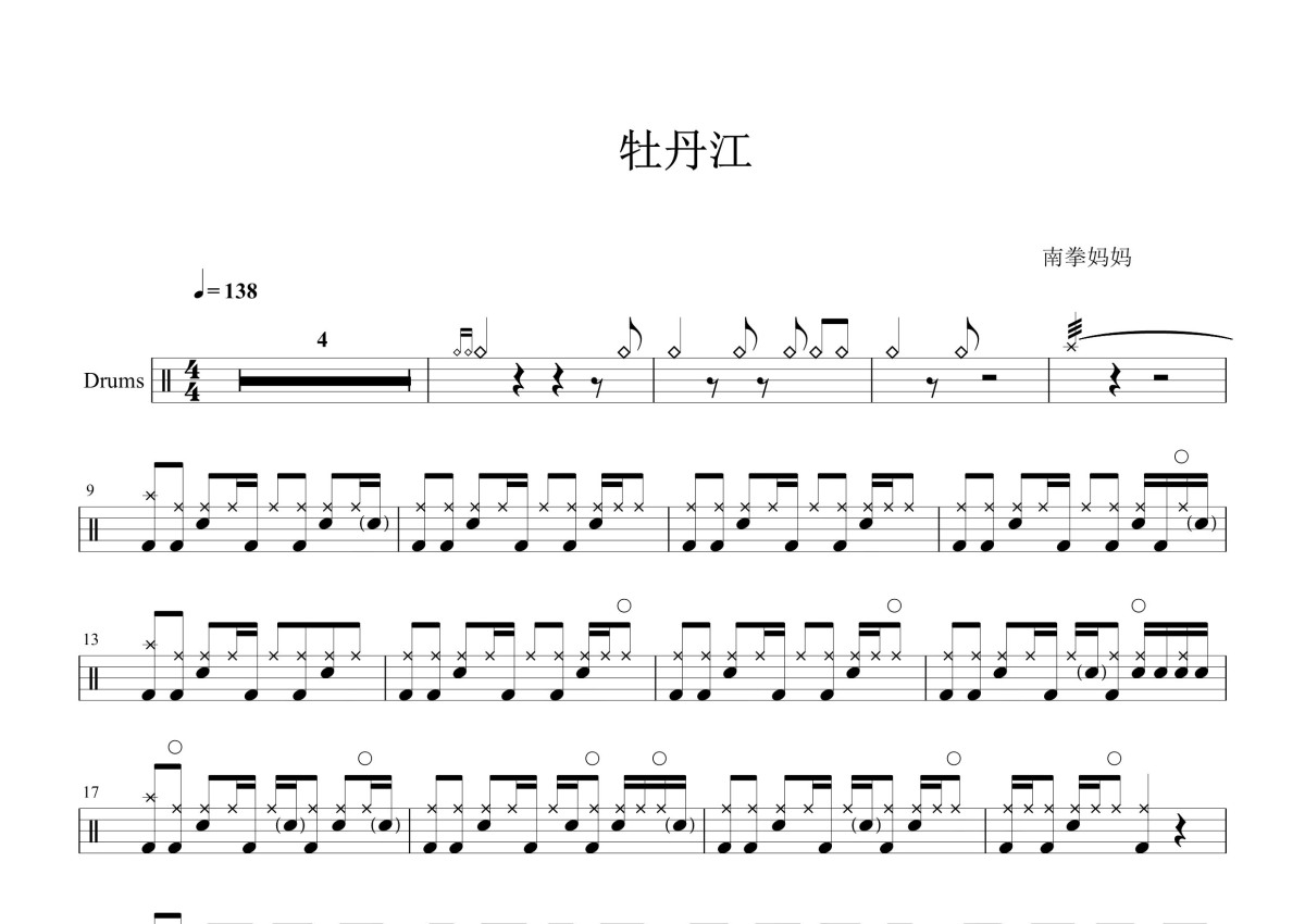 南拳妈妈《牡丹江》鼓谱 - 架子鼓谱
