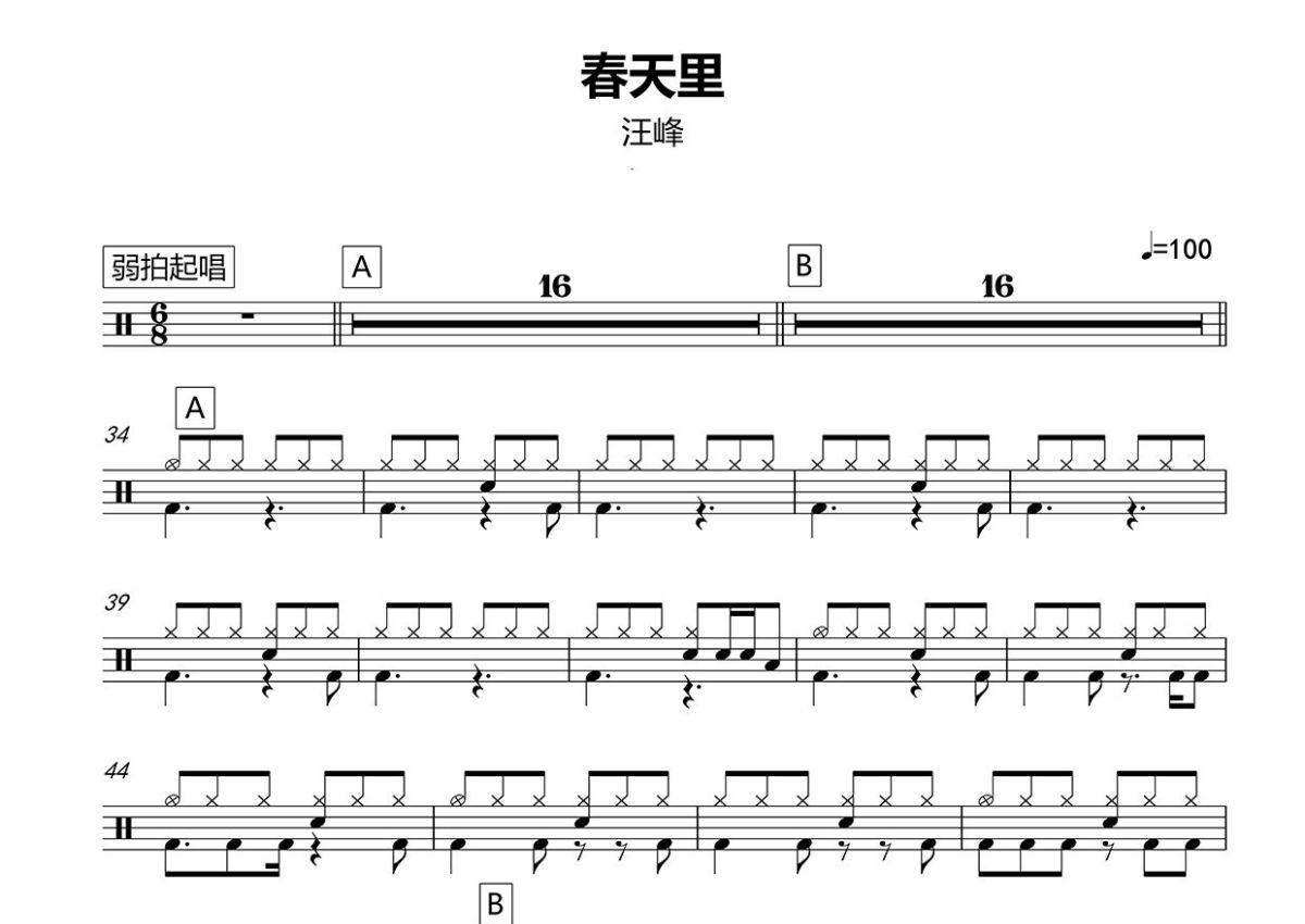 汪峰《春天里》鼓谱 - 架子鼓谱