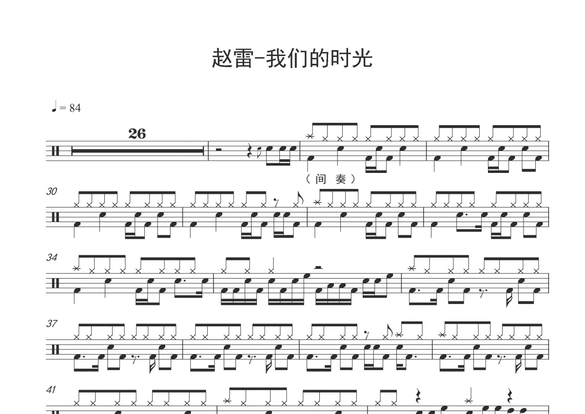 赵雷《我们的时光》鼓谱 - 架子鼓谱