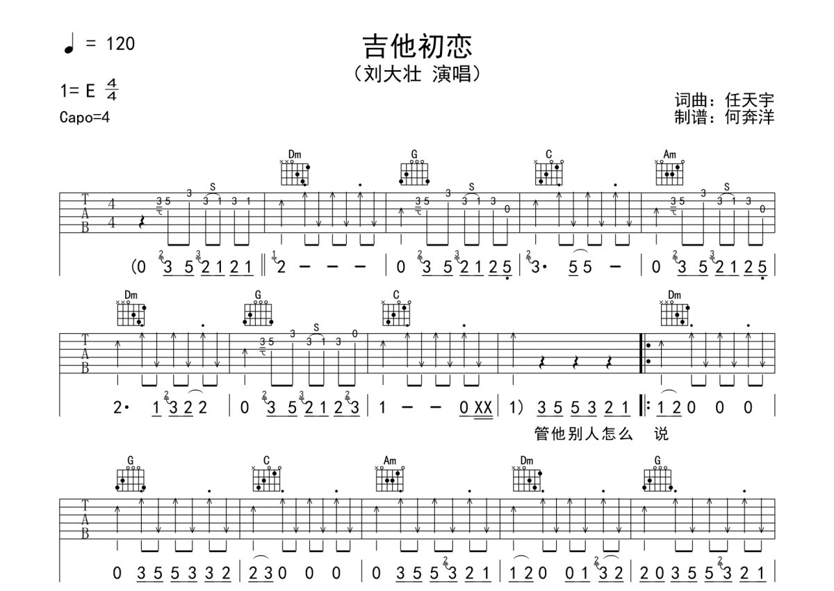 刘大壮《吉他初恋》吉他谱 - C调弹唱六线谱