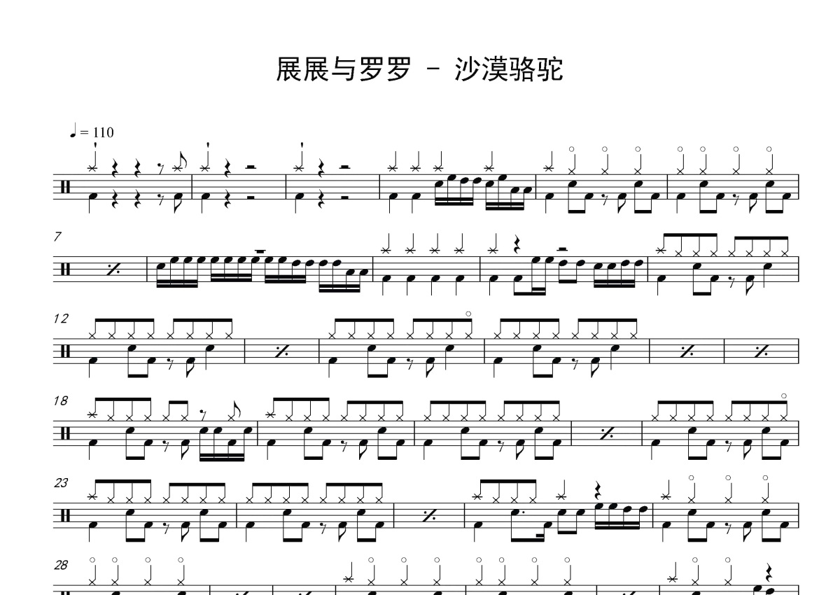 展展与罗罗《沙漠骆驼》鼓谱 - 架子鼓谱