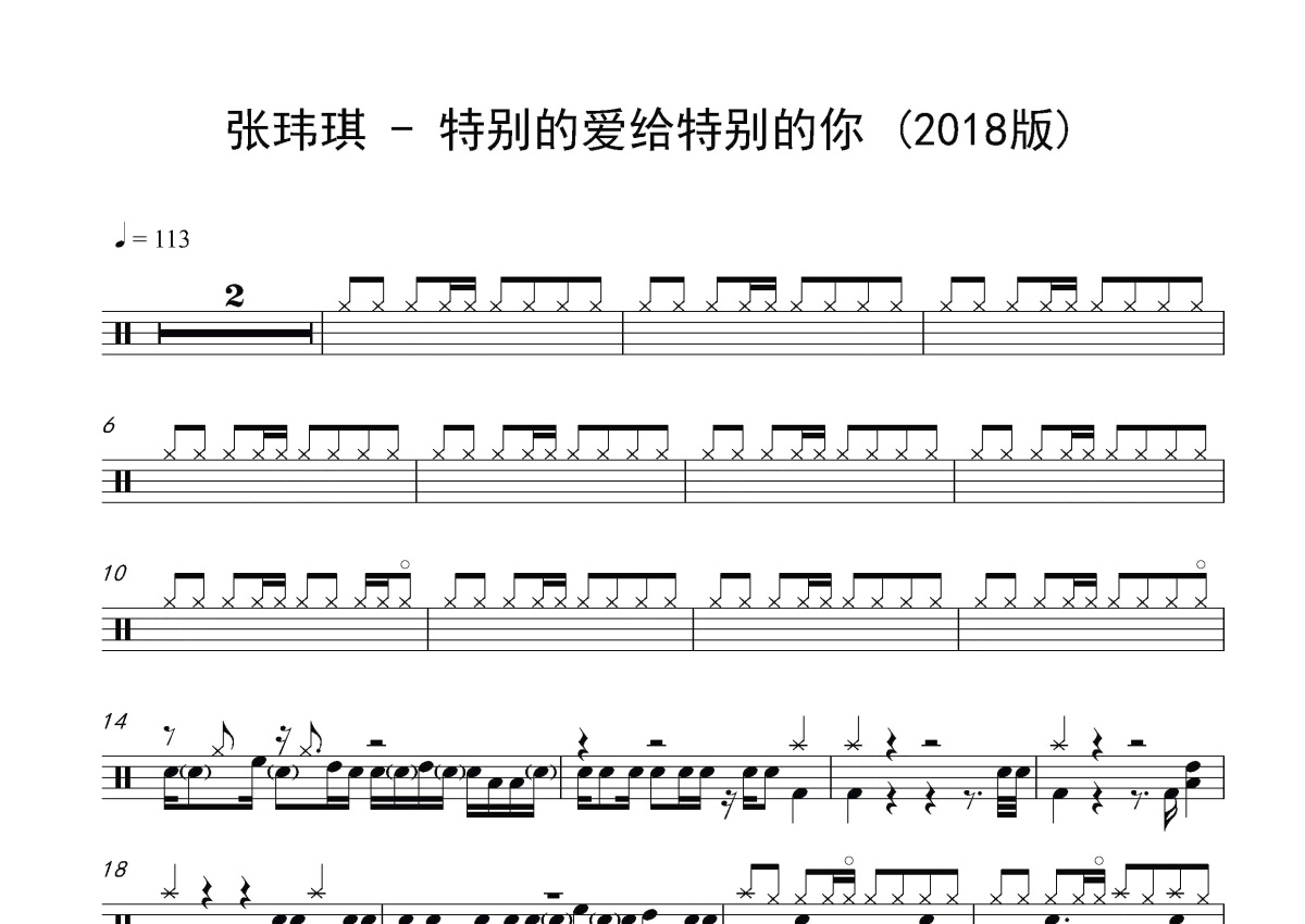 张玮琪《特别的爱给特别的你》鼓谱 - 架子鼓谱 - 2018版