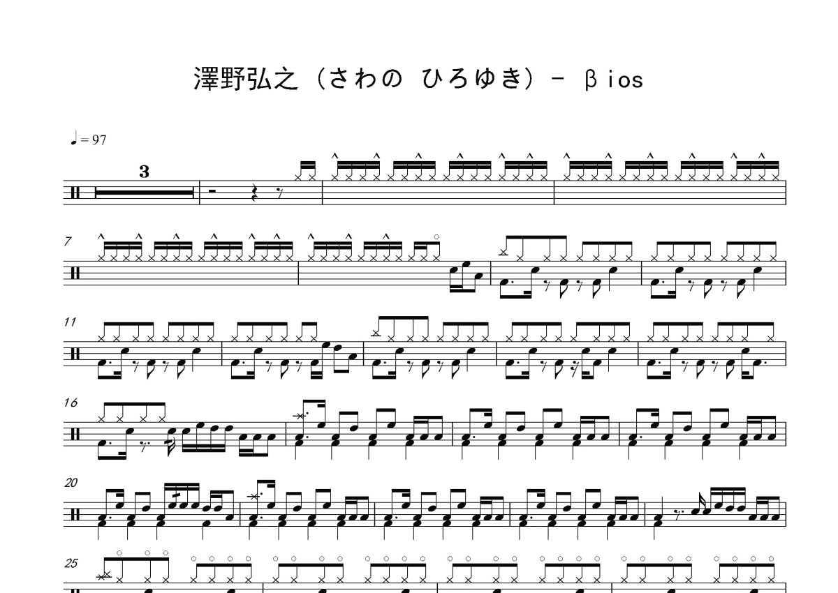 澤野弘之《βιοζ-δ》鼓谱 - 架子鼓谱