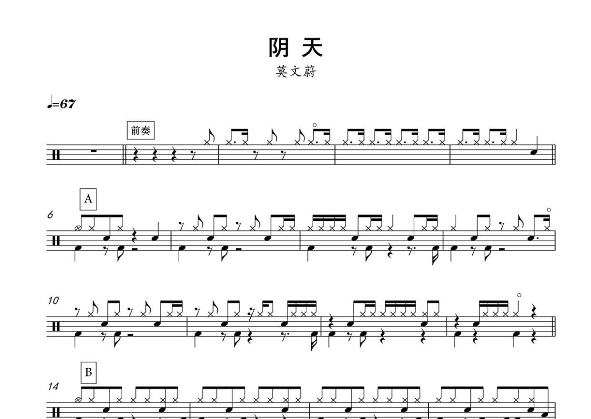 莫文蔚《阴天》鼓谱 - 架子鼓谱