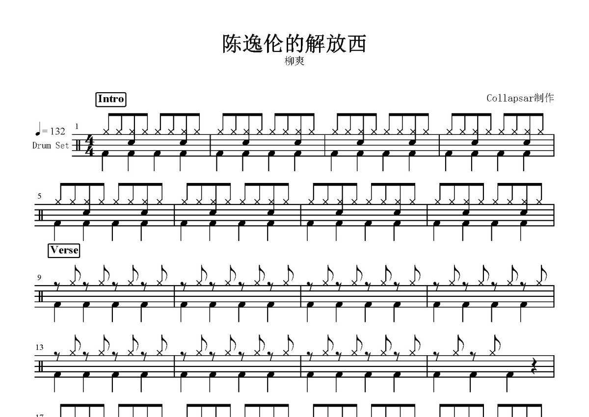 柳爽《陈逸伦的解放西》鼓谱 - 架子鼓谱