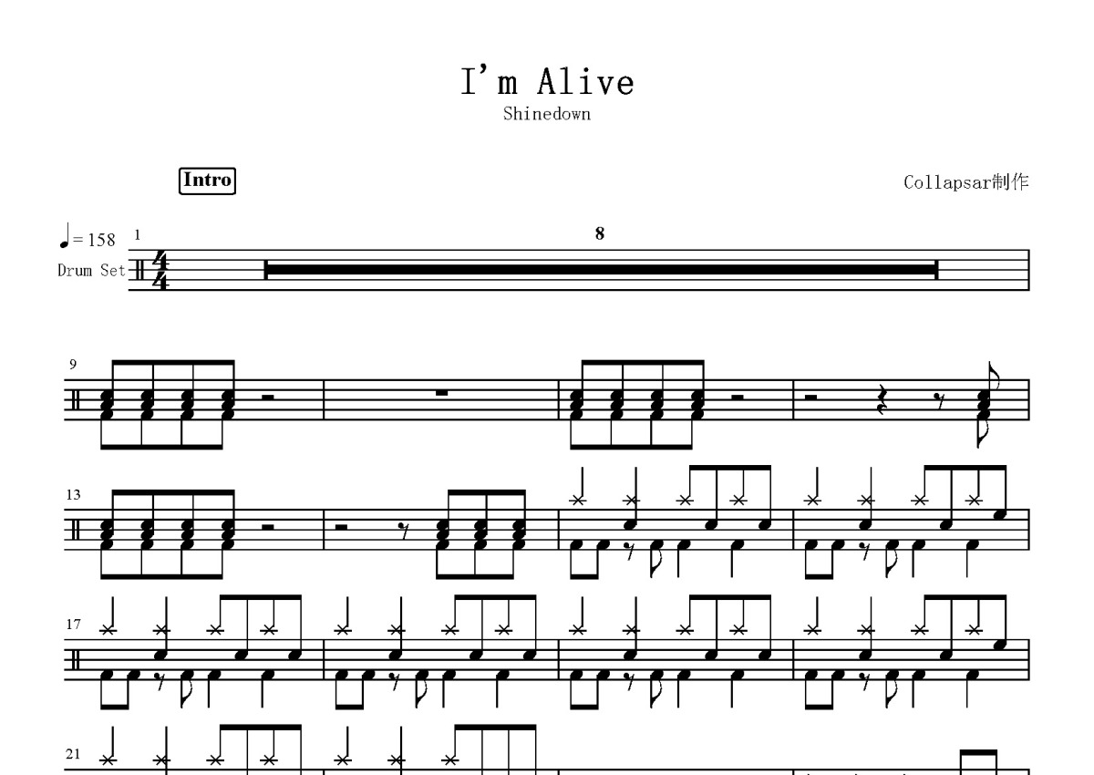 Shinedown《I'm Alive》鼓谱 - 架子鼓谱