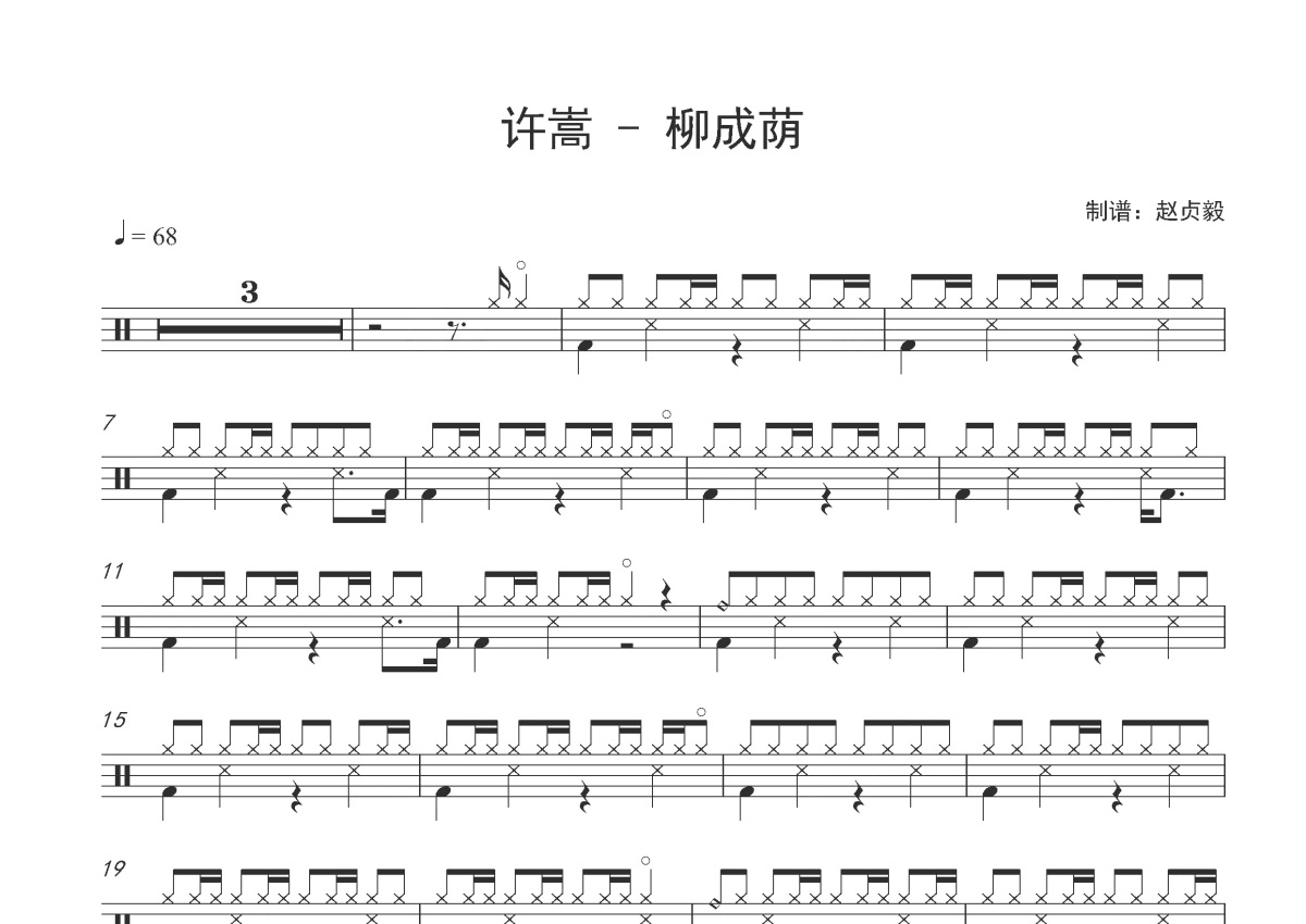 许嵩《柳成荫》鼓谱 - 架子鼓谱